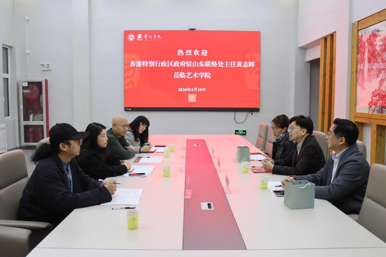 的接待表示感谢,高度评价我校艺术学科“艺术+财经”的特色模式。他结合香港国际文化艺术枢纽优势,介绍了香港推动两地艺术合作的政策支持与发展成果,指出鲁港两地在教育、文化艺术等领域合作潜力巨大,表示联络处将发挥桥梁作用,推动双方资源互补、共促文化艺术与教育事业高质量发展。
