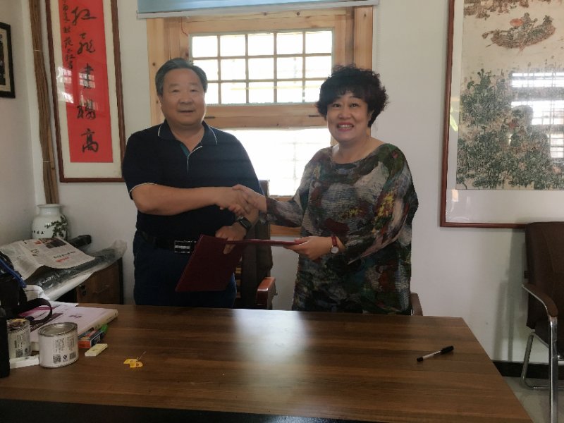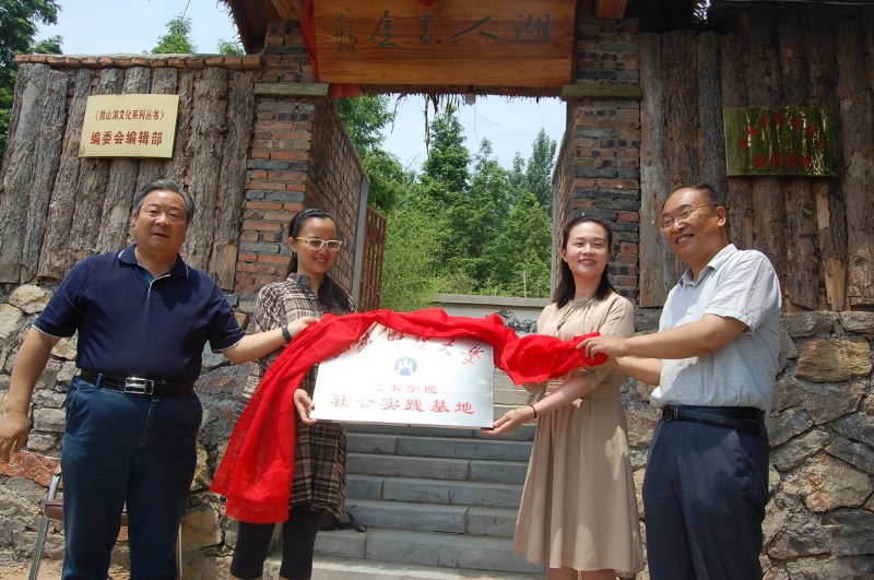 揭牌仪式上,济宁市原人大副主任、湖人书屋主人殷允岭先生与学院党委书记杨春丽共同签定了共建社会实践基地合作协议,并与院长范正红为实践基地揭牌。仪式后的座谈会上,双方表达了共同利用好实践基地这一平台,加强交流、互通有无、相互提携、合作共赢的美好愿景,并就下一步学院师生到“湖人书屋”开展采风、研修、艺术创作等活动达成了初步意向。仪式结束后,学院教师在书屋组织了小型笔会,现场挥毫泼墨,即兴创作了多幅精彩的书法绘画作品并捐赠给合作单位。