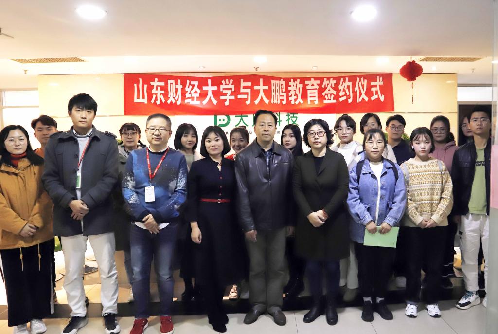 与北京知金大鹏教育科技有限公司在济南中银广场签订合作共建社会实践基地协议。党委副书记赵连幸,团委书记史萌、大鹏教育济南公司负责人、学生代表参加了活动。