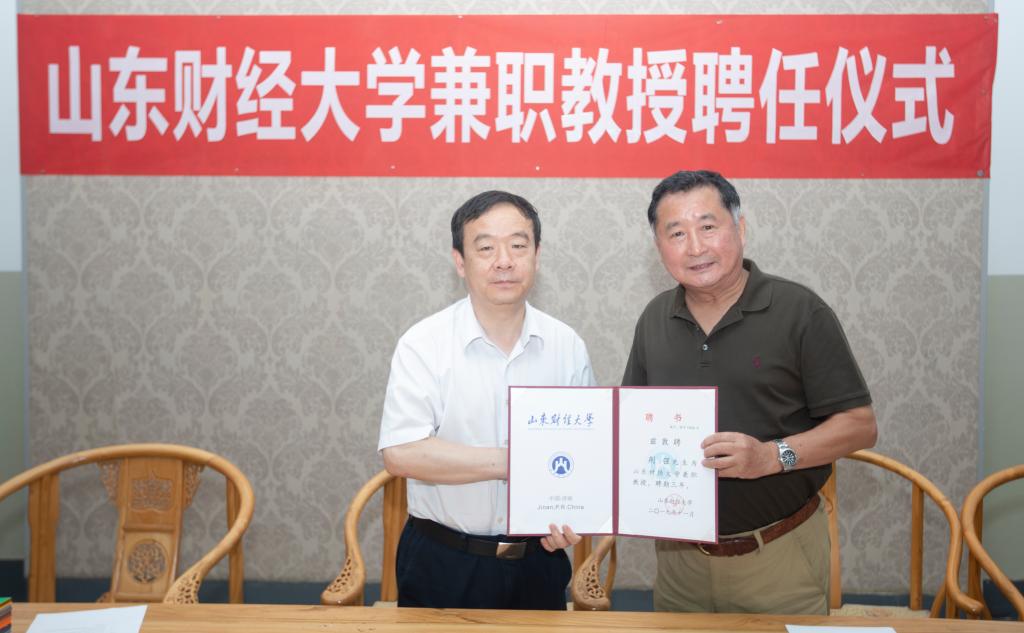 仪式上,党委书记王邵军代表学校向荆强先生颁发兼职教授聘书,副校长张书学向荆强先生赠送教学成果资料。