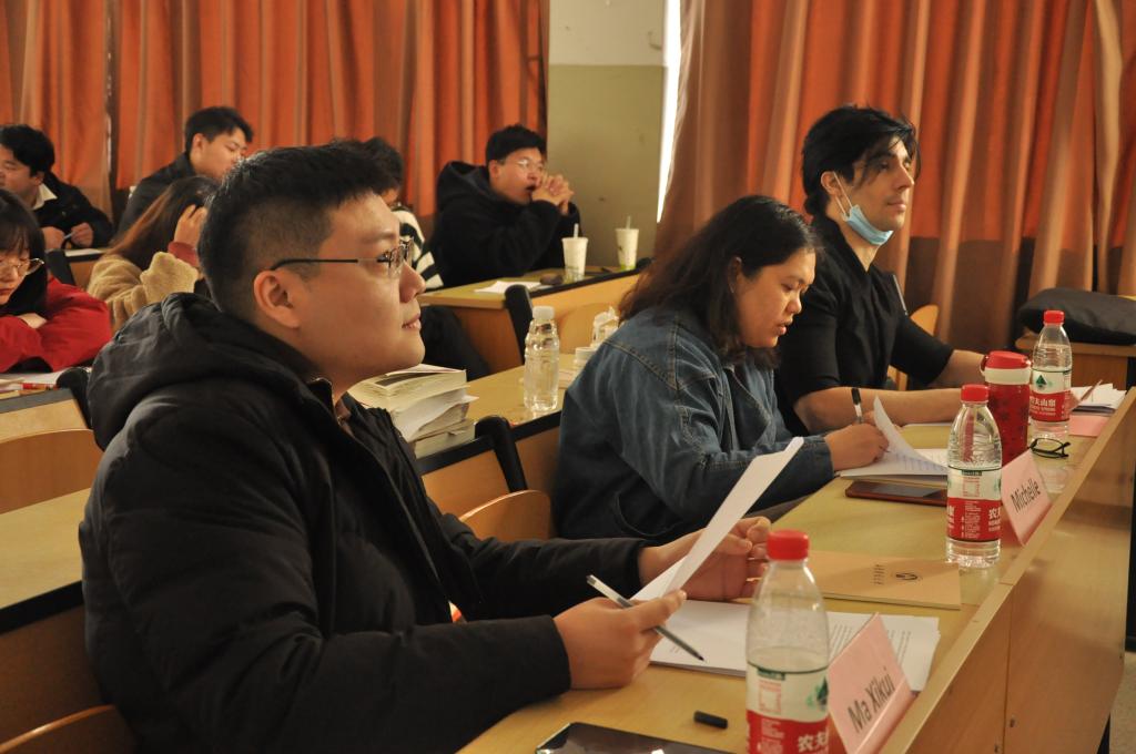 活动伊始,马熙逵老师向同学们介绍了两位外教情况,同时宣读了活动的规则。首先,学生展示PPT并开始汇报,围绕设计法则,以图像艺术的风格、内涵、影响为主体,用英语阐释自己的发现,展示自己研创的作品,做知识分享和研讨;之后,评委们向学生提问,并提出修改建议同时评分,最终合算分作为本次课程的学生阶段性成绩。