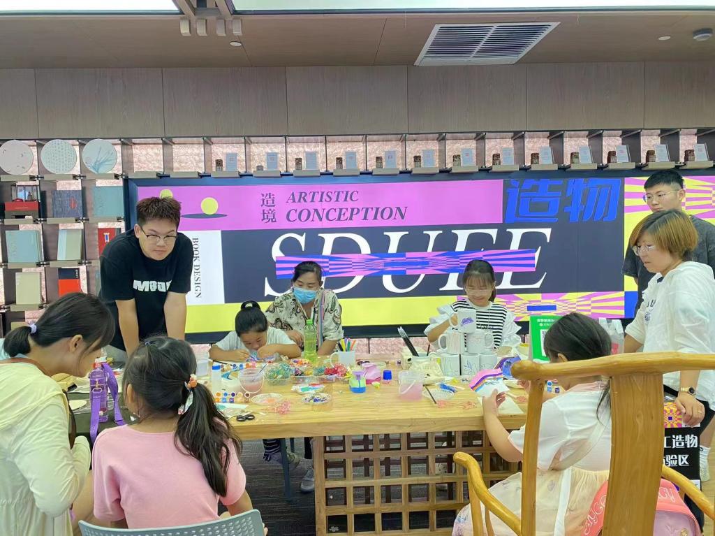 师生共同创意策划的大学生创新创业项目--“山财艺造SDUFE A&D” 多元“手造”体验活动在济南泉城路金街山东手造展示体验中心正式上线,吸引了众多中小学生和家长前往打卡,大家通过沉浸式地参与和互动,拉近生活与艺术的距离,真切体验生活中无处不在的美学元素。