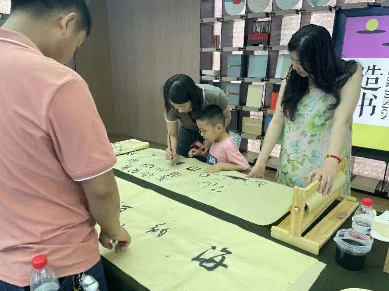 体验活动倡导以“美生活”实现“好生活”,以有品质的生活升华有质量的生活,借助专业的艺术审美搭建公众与生活美育的桥梁。本次展示和体验的内容主要包括四个板块,即“造字”、“造书”、“造物”与“造境”,人们既可以随心欣赏艺术家们的中国画、书籍、字体设计、篆刻等佳作,也可以使用主办方为大家准备的相关工具和材料进行现场创作,在活动现场,书法随写活动深受老中青各年龄群体的喜爱,大家舞动手中的毛笔,挥洒自如的展现自己对书法的领悟和对汉字的热爱;而小女生们则喜欢将一片片晕染山东风情的碎花布包裹在白色的书籍内页上,原本平淡无奇的白皮本会瞬间绽放出令人耳目一新的别样风情;最受欢迎也是最热闹的当属“造物”环节,画笔起落之间,一把把精美的圆扇、一个个独特的面具,无不展现出体验者们的别出心裁的设计和独到的审美情趣。
