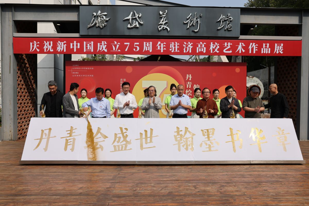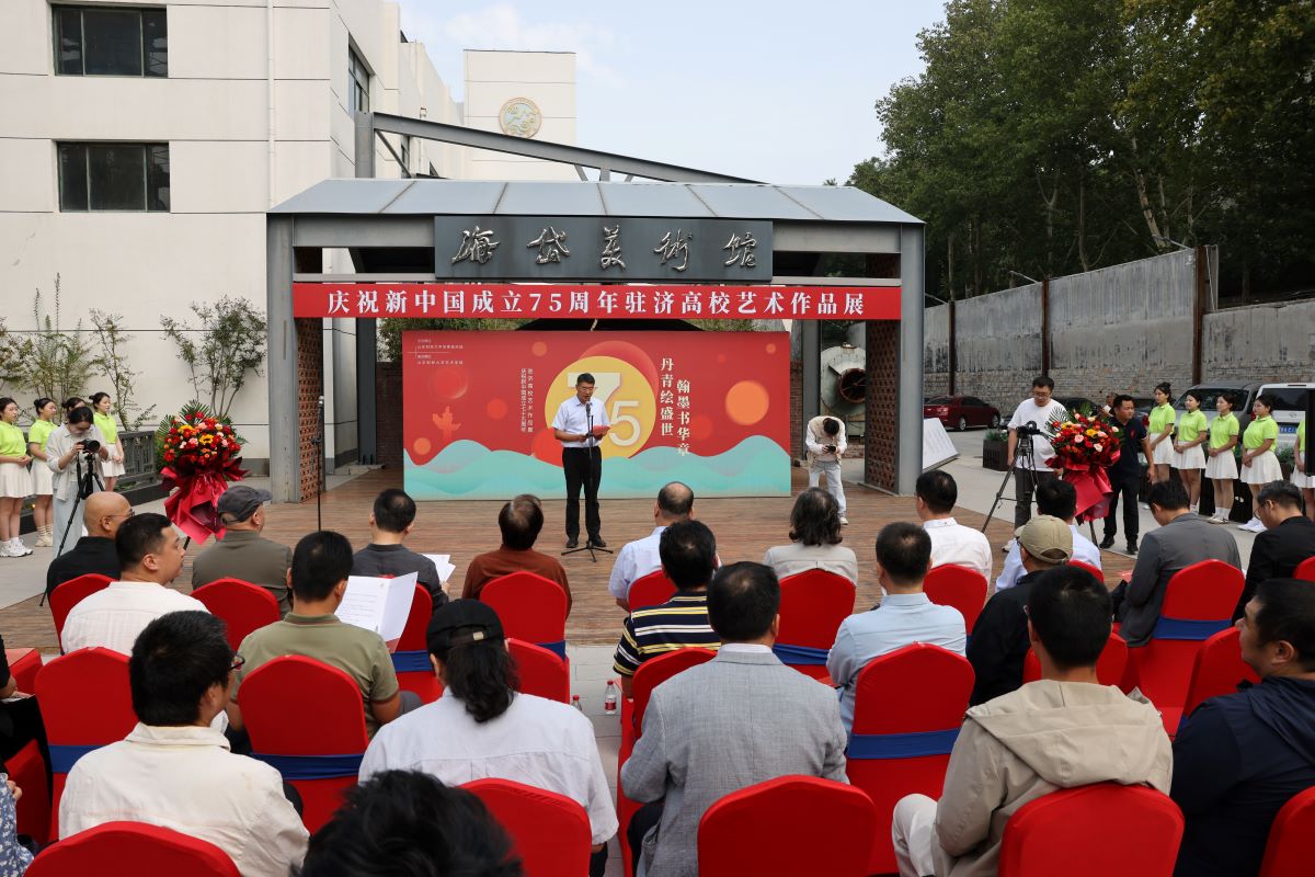 9月26日上午,“丹青绘盛世,翰墨书华章”庆祝新中国成立75周年驻济高校艺术作品展在我校海岱美术馆开幕。
