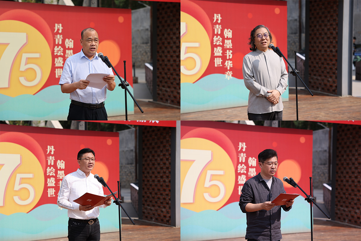 张培国在致辞中表示,新中国成立75周年以来,中国人民在中国共产党的坚强领导下,砥砺不辍、接续奋斗,以敢教日月换新天的豪迈勇气,创造了一个个人间奇迹,取得了举世瞩目的伟大历史成就。文化艺术一直根植人民、彰显时代,本次作品展征集过程中,广大驻济高校师生以赤子之心,满怀对祖国和人民的拳拳热爱之情,挥毫泼墨,以书言志,以画寄情,抒发对祖国壮美未来的衷心祝福和热切期盼。入展作品主题鲜明、技法醇熟、风格多样,将进一步激发师生的爱国热情,坚定文化自信,增强民族自豪感和凝聚力,为全面推进文化强国建设贡献智慧和力量。