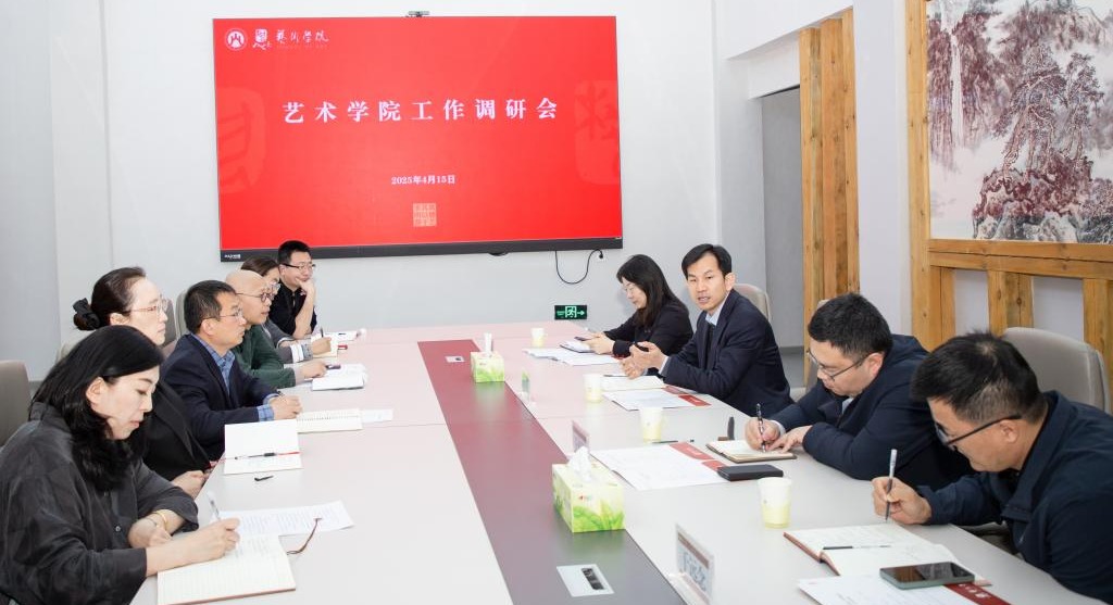 在人才培养、科学研究、社会服务、文化传承等方面取得的成绩给予肯定。针对学院工作实际和存在问题不足,谢申祥对学院发展提出三点要求。一是围绕中心、服务大局,坚持问题导向、目标导向,充分发挥学院比较优势,有效配置资源,高质量完成教育改革创新指标目标任务。二是以学科建设为龙头,开展有组织的科研工作,把教学、科研、社会服务、人才培养贯通起来,不断产出高质量成果。三是坚持“艺术+财经”“艺术+智能”交叉融合,坚持请进来与走出去相结合,借力破难题,合力促发展,发挥学院特色优势,服务学校高质量发展。