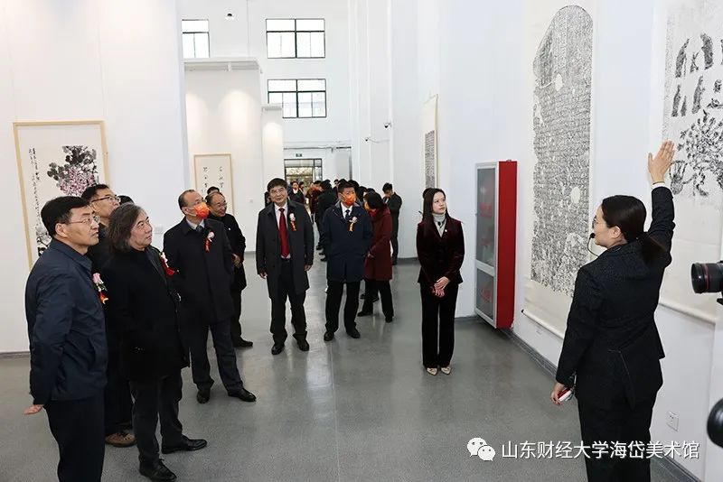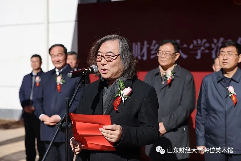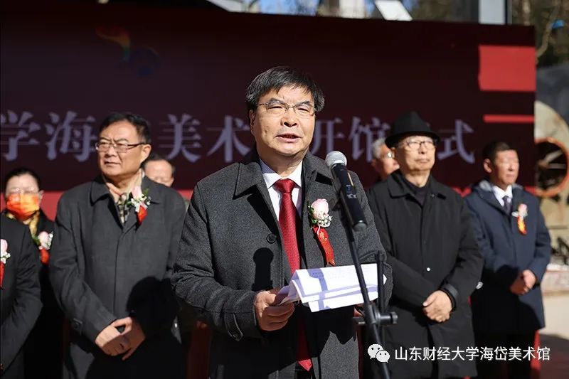 校长赵忠秀在致辞中谈到:“海岱美术馆的建成开馆,是贯彻落实党中央和总书记立德树人要求、推动德智体美劳五育并举的新举措,是学校美育工作迈出的新步伐。”“希望海岱美术馆要展示新形象,积极广泛汇聚社会资源,承接承办高规格的艺术展览,提升美术馆的社会影响力和辐射力,成为学校文化的新亮点、艺术的新名片;要凸显新功能,通过丰富多彩的会展、鉴赏、艺术研讨、文化交流等活动,提高师生审美情趣、升华审美修养、厚植审美情怀;要作出新贡献,广大师生要以开馆为契机,进一步解放思想、不断创新、务实奋进,以实际行动促进学校文化大发展、大繁荣,为建校70周年献礼!”