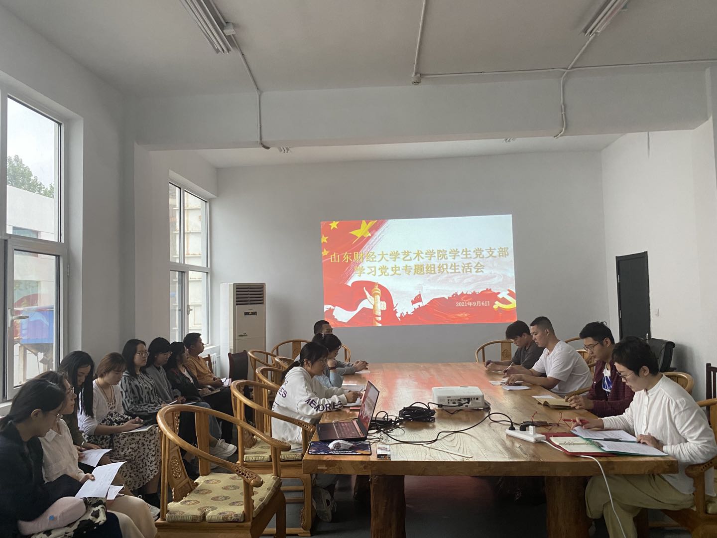 学生党支部全体党员在1号楼1262党员活动室召开本次专题组织生活会,会议由党支部书记史萌老师主持,本次会议应到16人,实到14人,2人请假。